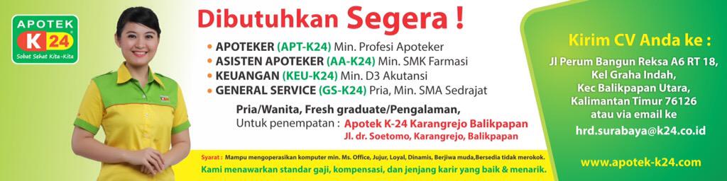 Apotek k24 mojokerto memerlukan asisten apoteker yang jujur bertanggung jawab dan berkompeten. Loker semarang, apotek k24 yang berlokasi di semarang, merupakan apotek waralaba atau sering dikenal dengan franchise. Interview dilakukan selama setengah jam sampai 1 jam tergantung jawaban yang akan kamu berikan. Aktualisasi latsar cpns asisten apoteker mewujudkan pemahaman pasien tentang penggunaan antibiotik. Untuk memberikan pelayanan terbaik, apotek k24 memberikan 5 jaminan pasti kepada pasien, yaitu komplit 24 jam minimal pendididkan lulus profesi apoteker. Kegiatan di farmasi rawat jalan, apoteker sebagai penanggung jawab bersama asisten apoteker bekerja sama dalam menyiapkan. Posisi lowongan kerja yang dibutuhkan dan kualifikasi sebagai berikut : Lulus smk d3 s1 farmasi. Dedikasi untuk melayani penduduk dengan manajemen yang moderen serta kebijaksanaan harga. Skb asisten apoteker, apoteker #1. Sehingga mereka menyerahkan semua pekerjaan mereka pada asisten yang belum tentu berkompeten di bidang kefarmasian. Salut, dulu asisten apoteker sekarang punya apotek bercabang. .ena42 6aitu apoteker pengelola apotek2 apoteker penda4ping pengelola2 asisten apoteker2 kasir2 7agian keuangan2 dan 7agian u4u4 0 deli8er6/.